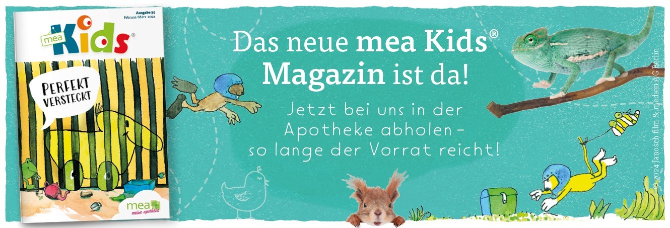 Ihre mea-Apotheke ist ein verlässlicher Partner für Ihre Gesundheit! Jeden Monat überzeugt Ihre mea-Apotheke durch kompetente Beratung und faire Preise. Ihre Gesundheit, Vorsorge und Ihr Wohlbefinden stehen dabei immer im Mittelpunkt. Fragen Sie in Ihrer mea-Apotheke nach aktuellen Aktionen!